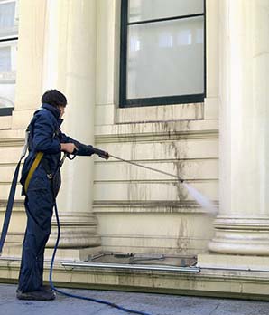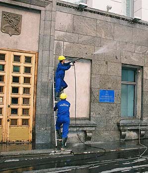 Высокогидравлическая уборка - метод применяют для удаления жировых пятен, лакокрасочных покрытий щелочными моющими средствами, подаваемыми на фасад под большим давлением.