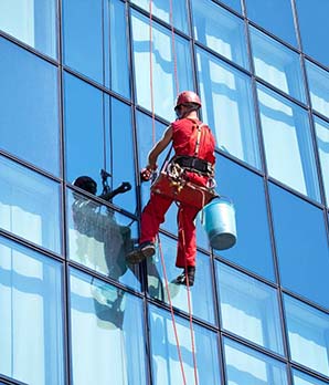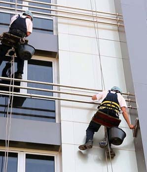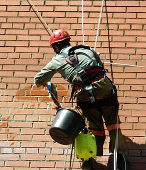 Мытье фасадов промышленными альпинистами